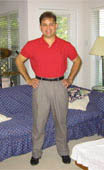 Jose stumbled across our web site accidentally and was immediately intrigued by the Rowbike. After receiving his machine he began rowing every other day to build endurance. After four months of slowly increasing speed he began to notice significant weight loss (25 pounds). Over the next two months friends and family members watched Jose continue to lose even more weight...his father barely even recognized him when he sent him a picture! Jose is now into his third year of Rowbiking and has been steadily developing muscle while maintaining his size by rowing 18 miles in an hour and a half, every other day. He enjoys rowling the trails around Grapevine Lake near his home in Dallas, Texas, and loves the looks he gets every time he goes out rowing!